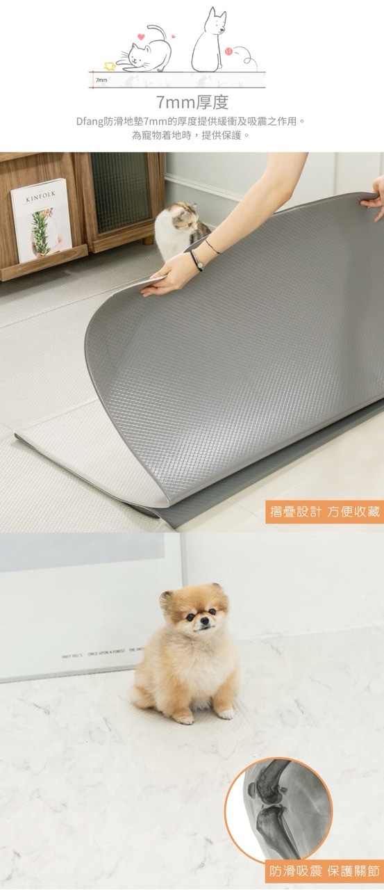 7mm加强防刮防滑保護軟墊。無論是活潑年幼還是年長寵物都有機會在地板上跑跳時滑倒。寵物因滑倒而損傷關節的情況,并不是罕見的。而關節損傷除了引來額外醫療開支之外,康復期也不短,影響家人的日常生活。爲了避免寵物滑倒,保護關節,Dfang 寵物防滑保護軟墊是寵物家庭必備之選。
