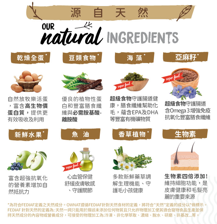 - 符合FEDIAF Good Practices Code 指定標準定義之天然成份