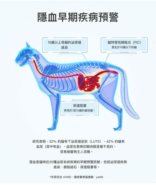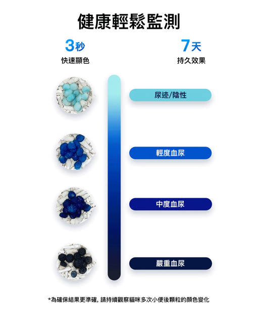 1. 含有1%的血液測試顆粒,用於檢測貓尿中的微量血液,實現健康自我檢查