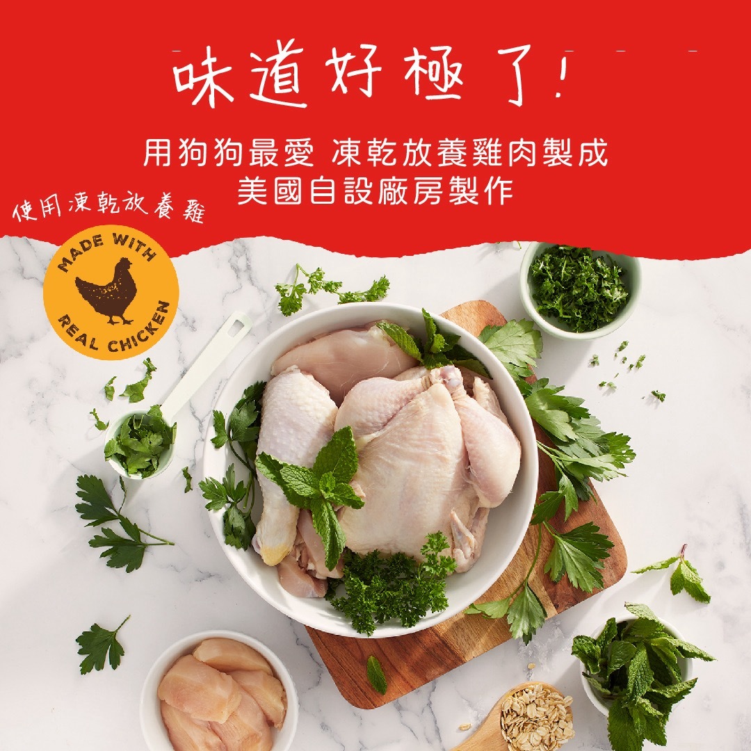 • 採用凍乾放養雞肉製成,味道鮮美