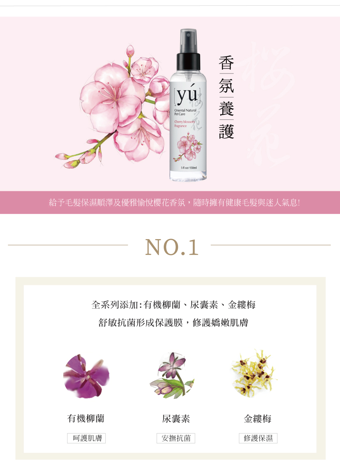 亞洲寵物專屬保養型香水,給予毛髮保濕順澤及優雅愉悅櫻花香氛,讓你的牠隨時擁有健康毛髮與迷人氣息!