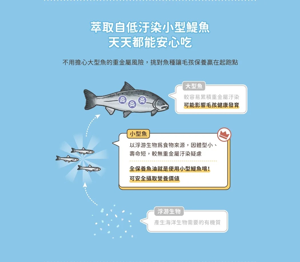 • 單方保健 X 單一小型魚種,減少毛孩過敏機率