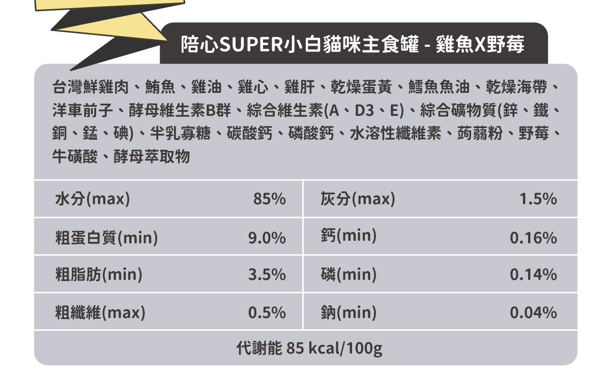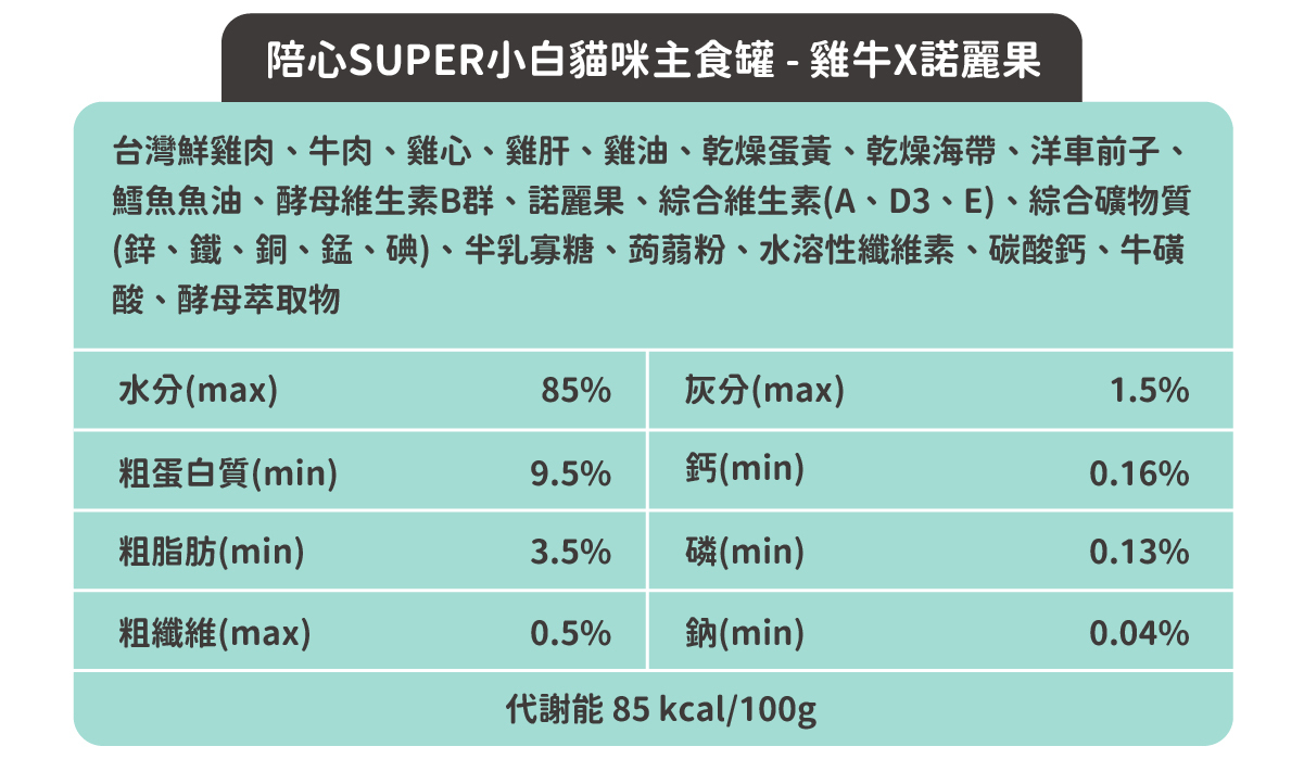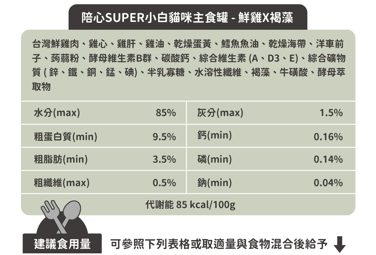 符合AAFCO&NRC建議之營養標準,適合全齡貓貓食用