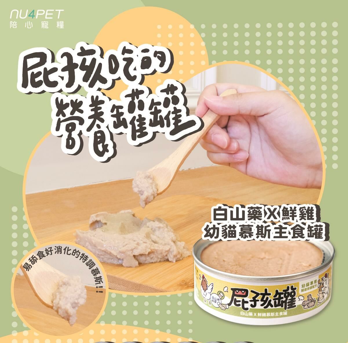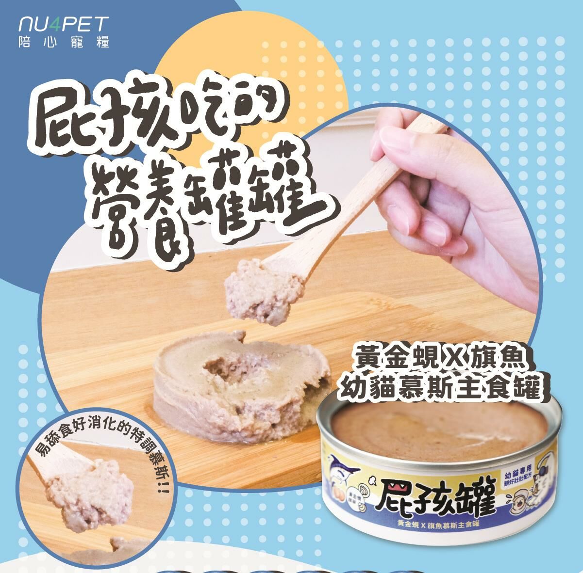 ✔ 陪心特調慕斯、奶霜質地,方便幼貓舔食